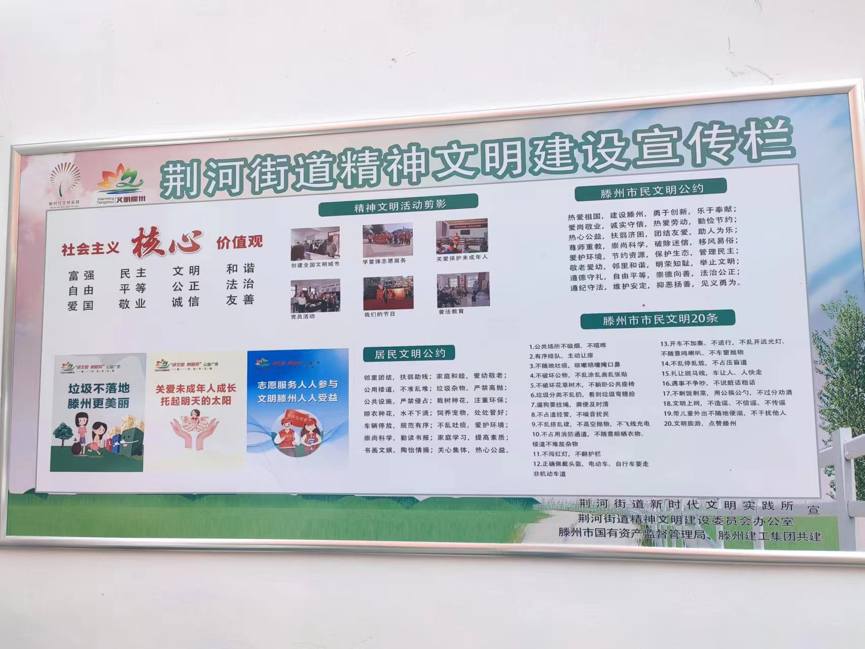隨后,高聘國、秦延勇和市國資局、建工集團(tuán)相關(guān)黨員同志深入平等社區(qū)捐贈懸掛各類關(guān)于創(chuàng)建全國文明城市精神文明建設(shè)宣傳欄板12塊。高聘國就平等社區(qū)開展全國文明城市創(chuàng)建和新時代文明實踐工作取得的成效給予了高度肯定,同時也指出創(chuàng)城工作是一項需要持續(xù)發(fā)力的共建工作,市國資局、建工集團(tuán)會加大共駐共建力度,積極踐行新時代文明實踐志愿服務(wù),把平等社區(qū)關(guān)于創(chuàng)城的各項工作落實到位,為推進(jìn)全市創(chuàng)建全國文明城市做出貢獻(xiàn)。